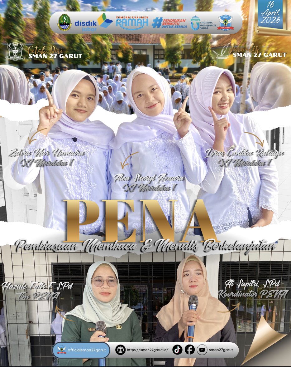 Kegiatan PENA (Pembiasaan Membaca dan Menulis Berkelanjutan) merupakan salah satu program literasi SMAN 27 Garut yang bertujuan untuk menumbuhkan budaya membaca, memahami, serta mengomunikasikan kembali informasi secara runtut dan bermakna. Kegiatan ini dilaksanakan secara rutin setiap hari Kamis dengan pendekatan multiliterasi menggunakan tiga bahasa, yaitu Bahasa Indonesia, Bahasa Inggris, dan Bahasa Sunda.